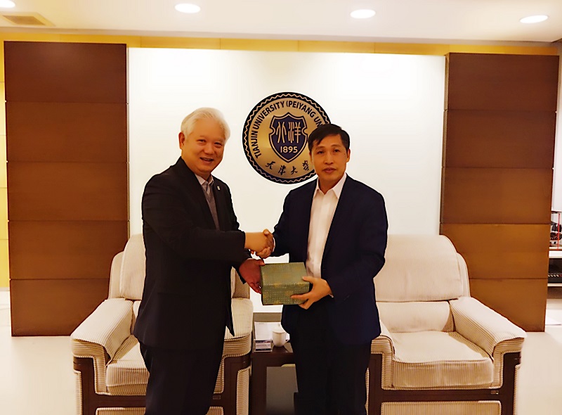 本站讯(通讯员 刘辛未)12月12日,韩国高丽大学常务副校长Kwan-Young Lee教授、副校长Sunhyuk KIM教授率代表团访问天津大学。校长钟登华、校党委副书记雷鸣代表学校与外宾会见会谈,化工学院、国际处相关负责同志参加了会谈。