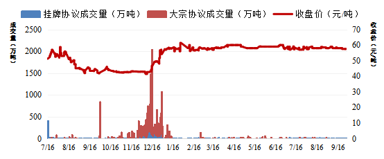 交易以大宗协议交易为主,碳市场运行一周年,大宗协议交易量达1.61亿吨,占总交易量的83.9%。不过,张中祥指出,以大宗交易为主,大宗协议交易相对挂牌交易存在一定的折价,价格未能反映配额价值或边际减排成本,价格信号失真。