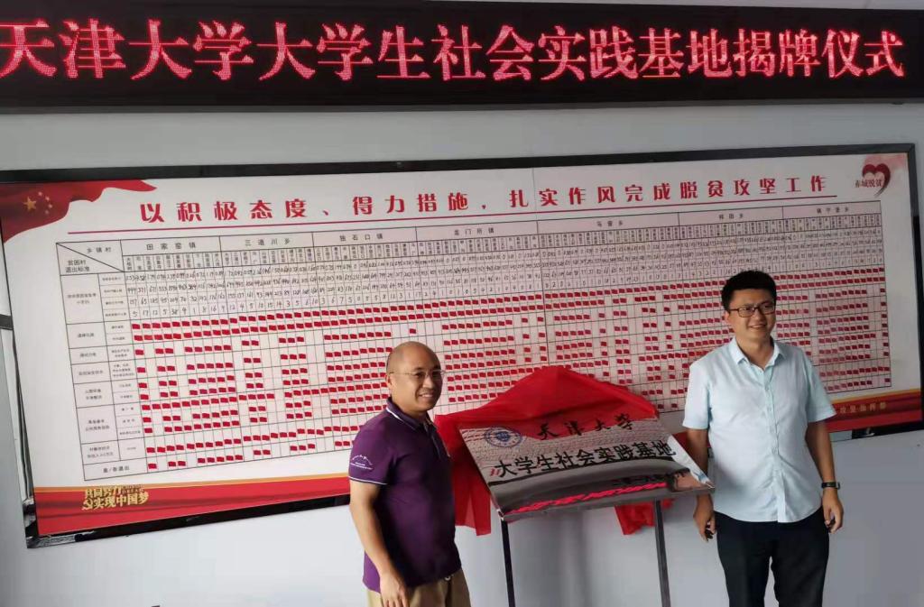 实践队在赤城县脱贫攻坚办公室建立“天津大学学生社会实践基地”。赤城县副县长李想、张家口市督查办庞永奇、赤城县委组织部、赤城县委办公室等参加揭牌仪式。单小麟介绍“新工科”教育在天津大学和求是学部的开展情况。他强调,教育的根本任务是培养社会主义事业的建设者和接班人,学校鼓励在校大学生参与社会实践工作,今年天津大学有六千余学生在全国各地开展社会实践,社会实践是培养学生家国情怀、增强社会责任感的重要途径。
