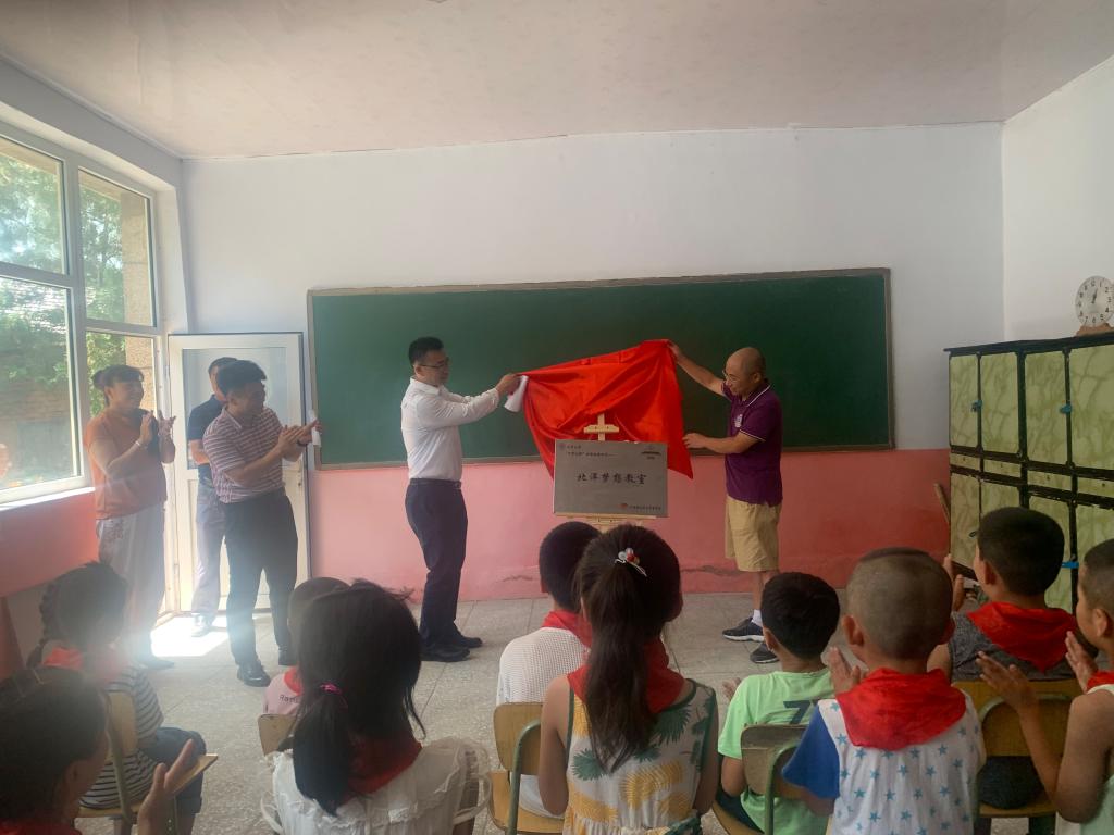 本站讯(通讯员 崔珊珊)望七十年英华卓荦,筑今朝时代风华。为挖掘校友在国家经济社会发展中、在脱贫攻坚中所做的突出贡献,激发师生和校友爱国热情,7月底,求是学部党委书记单小麟,求是学部时子庆、纪颖和部分学生骨干,赴张家口赤城县走访校友并开展社会实践活动。实践队在张家口赤城县后城镇河西村小学捐建一间“北洋梦想教室”,在赤城县扶贫办公室建立学生社会实践基地。