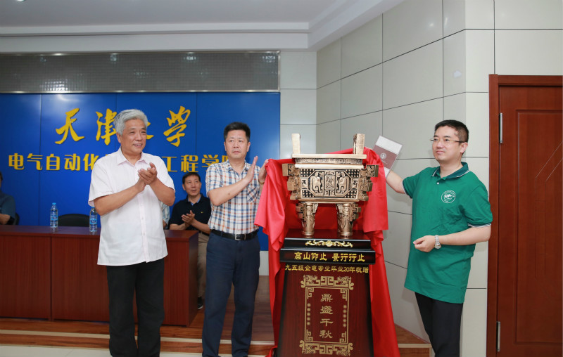 桃李不言,下自成蹊。阔别母校20年,校友们不忘初心,铭记师恩,大家精心挑选捐赠设备,95级企电专业捐赠钟鼎一座,寓意鼎力支持学院发展;95级仪表专业校友为学院会议室捐赠平板电视一台,改善学院会议室设施。