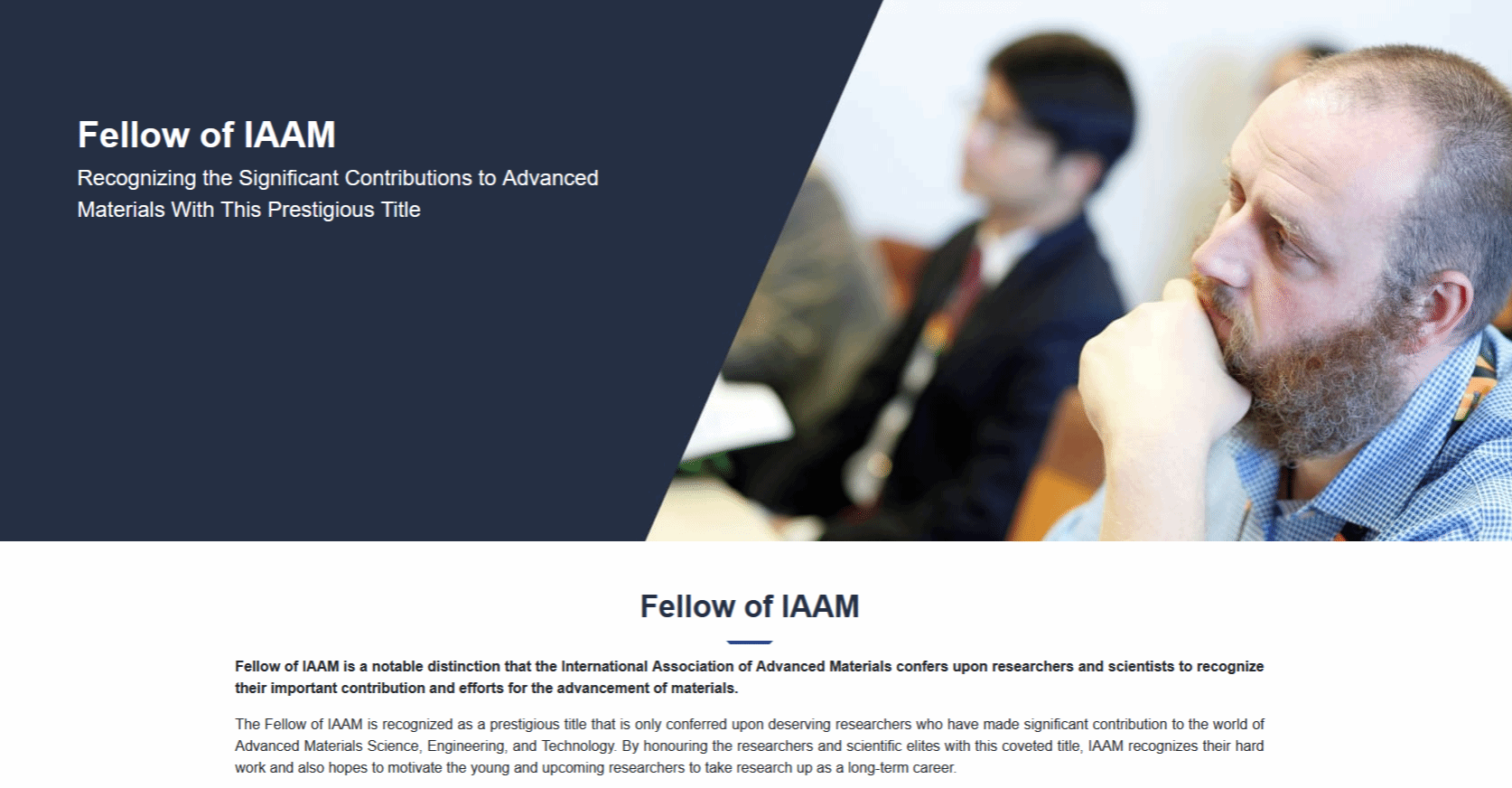 国际先进材料学会 (International Association of Advanced Materials, IAAM)成立于2010年,总部位于瑞典斯德哥尔摩,目前拥有来自超过150个国家的10万多名会员,是先进材料科学与工程领域的国际权威学术组织,致力于为先进材料科学、工程和技术在世界范围内的快速发展提供高水平的学术平台,现已发展成为材料科学领域各类学科领军人才的聚集地和学术引领者。IAAM以“材料向全球卓越迈进”为宗旨,应用先进材料为世界紧迫问题寻找解决方案,致力于促进国际先进材料研究人员的交流合作,并通过伙伴关系、合作和产业化等来转化为推动世界科学快速发展的动力。该学会定期组织各种学术会议,包括世界先进材料大会、欧洲先进材料大会、美国先进材料大会和亚洲先进材料大会等。