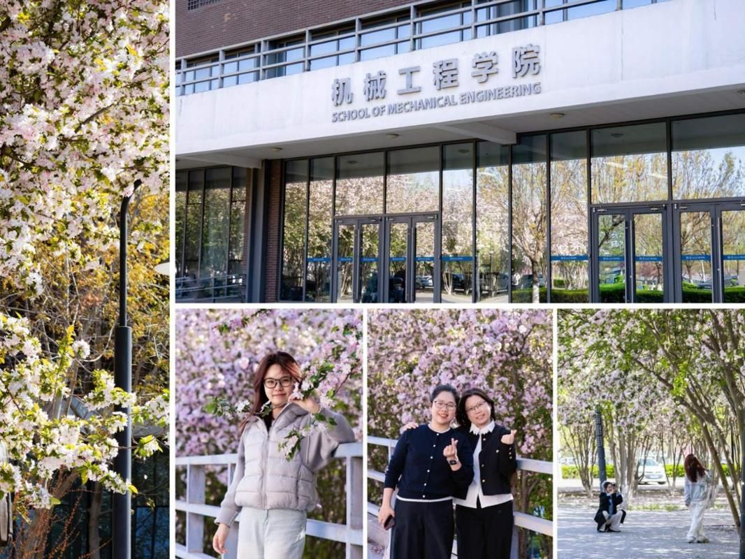机械工程学院37楼前的海棠开得格外动人,枝间新绿一重重,小蕾深藏数点红。粉白相间,花枝低垂,成为校园里一处小小的“网红打卡点”。不少人专程前来,在花墙前比个“耶”,在实验室门口来张“全家福”。师生、校友、家人、朋友,一张张笑脸,是这个春天最温暖的注脚。