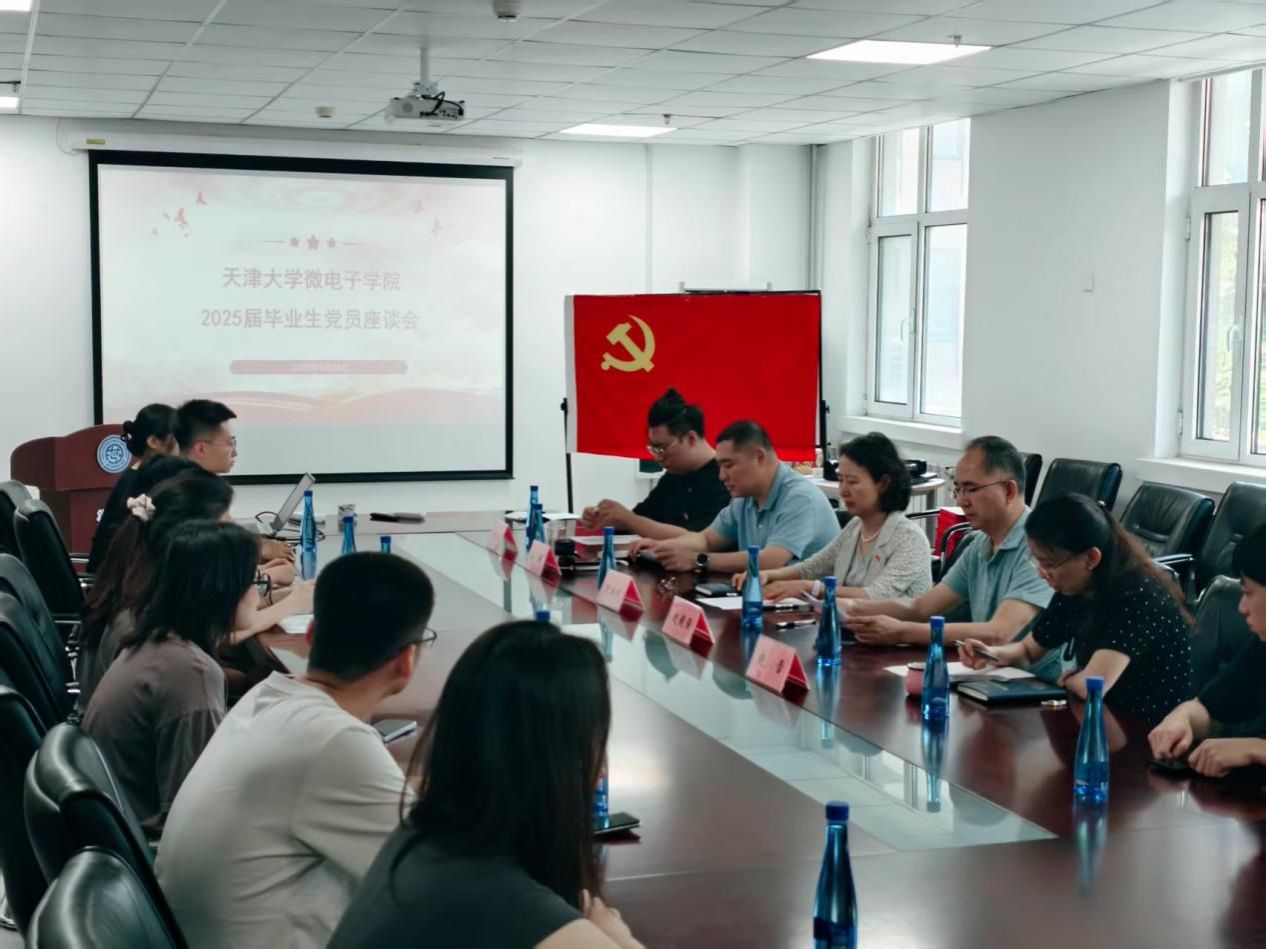 为深入贯彻中央八项规定精神学习教育走深走实,引导毕业生党员用党的创新理论统一思想、统一意志、统一行动,在新的学习和工作中正作风、强党性,坚定理想信念,6月24日,微电子学院于228会议室顺利举办2025届毕业生党员座谈会。微电子学院党委书记贾果欣、党委副书记韩旭、党委委员赵毅强、组织员赵雪、2021级本科生辅导员宋明璐、“思想领航”宣讲团成员王礼泽以及2025届毕业生党员代表共同参与本次座谈。会议由党委副书记韩旭主持。