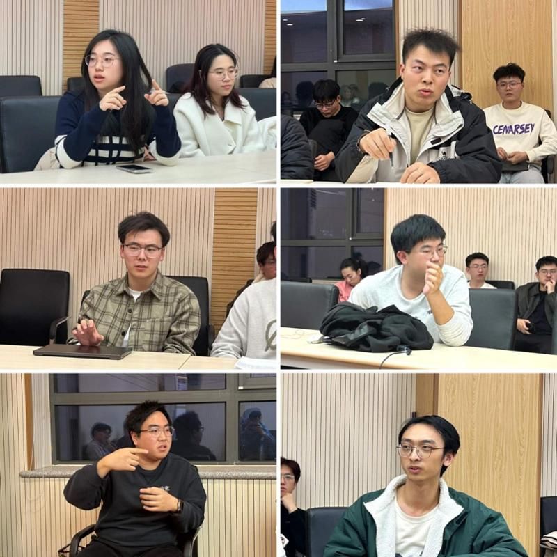 在最后的互动交流环节中,双方支部成员围绕各自研究中的难点与兴趣点展开了广泛而深入的讨论。从通用大模型与机械领域垂类模型的差异,到计算机视觉在机床误差测量中的具体应用,再到具身智能与机械本体结构设计的关系。通过交流,机械方向的同志进一步理解了Transformer架构的具体实现、训练数据的标注、视觉测量精度以及具身智能在实际应用中的难点;计算机方向的同志则深入了解了机械学科所关注的实际问题、故障诊断的技术依据以及结构设计研究的前沿进展。双方在思想碰撞中共同探讨了未来学科交叉与技术融合的潜在方向,为进一步合作奠定了坚实基础。