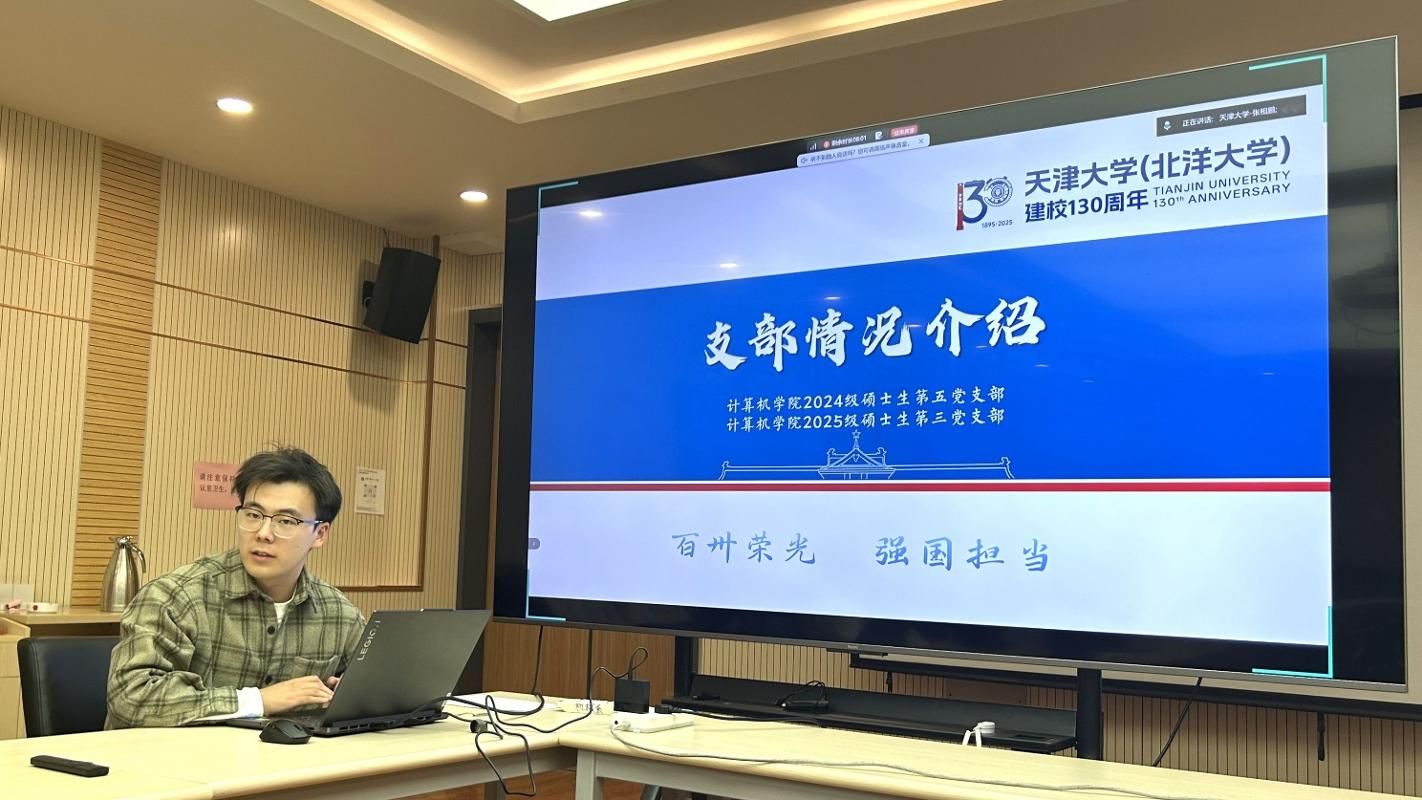 为深入学习贯彻党的二十届四中全会精神,认真领会习近平总书记给天津大学师生重要回信的深刻内涵,积极响应总书记对广大师生服务国家重大战略的殷切期望,11月26日晚,机械专业博士生第五党支部、机械专业硕士生第五党支部、计算机科学与技术学院2024级硕士生第五党支部、2025级硕士生第三党支部在37教南楼216会议室共同举办联学共建活动。活动由机械专业博士生第五党支部书记张相鹏主持。