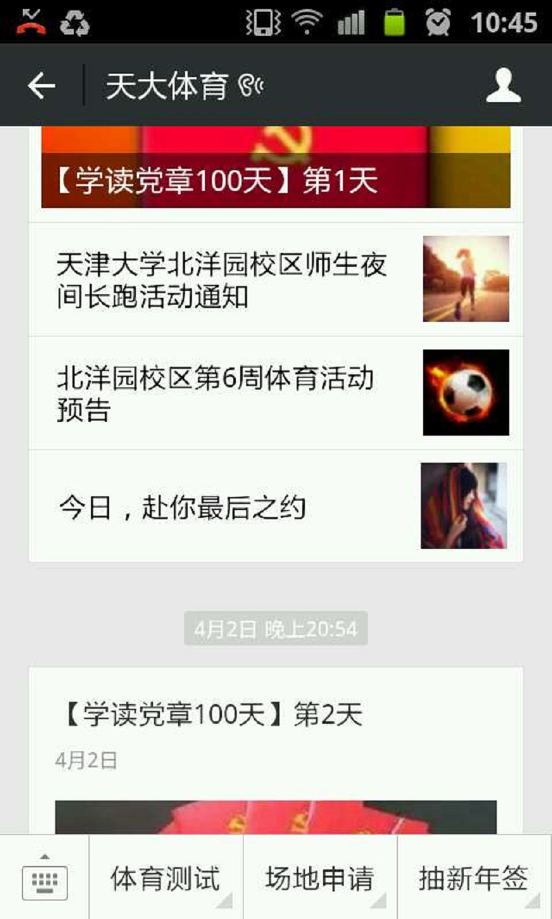 据悉,截至目前,体育部党总支倡议总支全体党员参加“手抄党章100天”活动已经跟随微信公众号“学习小组”的步伐进行到第47天,超过80%的党员同志参加了该活动。自4月1日起,“学读党章100天”按照“手抄党章100天”的节奏进行到第16天,希望在“学读党章100天”活动的带动下,大家一起大声朗读、熟读党章,做到“逐条逐句通读党章”,为“两学一做”学习教育打下坚实基础。