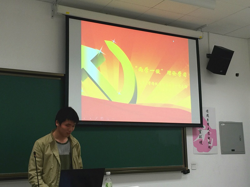 首先,杨朝乾带领党员共同学习近平总书记十八届五中全会关于“五大理念”重要讲话报告,报告由近期刚结束的“两会”引出,主要阐述总书记“五大理念”讲话如何引领中国发展。从“五大理念”对经济发展大趋势、“五大理念”对实现“两个一百年”目标、“五大理念”如何推进“四个全面”战略布局,实现中国梦三个方面对总书记的讲话做了详细解释,使在座的学生党员理解当前树立和贯彻落实创新、协调、绿色、开放、共享的发展理念的重要性。随后党支部成员集体观看了“两学一做”学习视频,更加深入地学习和理解了“两学一做”的内涵,更加明确了作为党员干部的先锋模范作用,使“两学一做”落实到强化理想信念上。使成员明确了“两学一做”即为“学党规党章 学系列讲话 做合格党员”,并从“是什么”“学什么”“怎么学”等方面明确了今后该如何践行两学一做在这一小时的学习会中,学生党员根据杨朝乾的讲解积极进行交流,更有不少同学到讲台上畅谈对总书记讲话的理解。