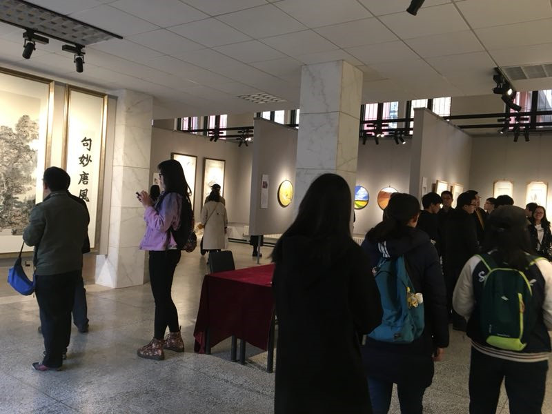 展厅里小朋友和父母们神情专注,逐一欣赏展出作品。小朋友们在展厅里跑来跑去,看看这个,瞧瞧那个,欢喜极了。也有很多身穿校服的中学生来参观, “我最喜欢这个了,轻柔的春风,盛开的花儿,嬉游的鸭子,让人仿佛置身画中。”接受采访的王同学指着《春江水暖图》说到。