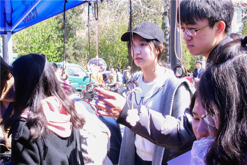 本站讯(学生记者团记者 侯艺然 陈铮杰)春光正好,又是一年一度的海棠季。今天的天大热闹非凡,尤其在铭德道两侧,有手绘扇子的闲情逸趣,有汉服的古典韵味,可以听到吉他弹奏的美妙音乐,也可以听到师生感情充沛的诗歌朗诵,还有民俗展示、猜灯谜、愿望树、礼仪培训、传统文化、安全知识……各种活动异彩纷呈。