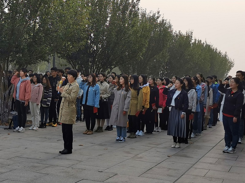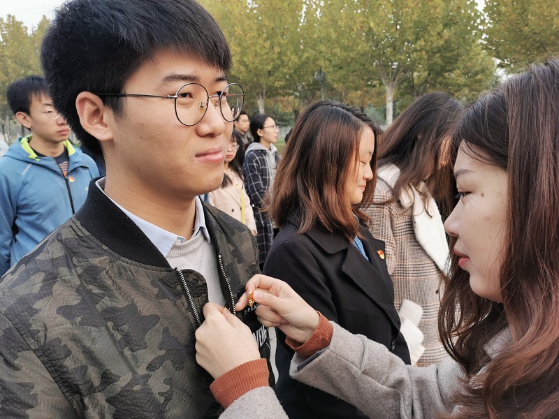 本站讯(通讯员 吴頔)2019年10月23日,理学院在北洋园校区国旗下开展了“佩戴党徽亮身份,政治生日唤初心”——“不忘初心、牢记使命”主题教育活动,为四十余名党员佩戴党徽,过集体政治生日。理学院党委副书记王作金出席活动。
