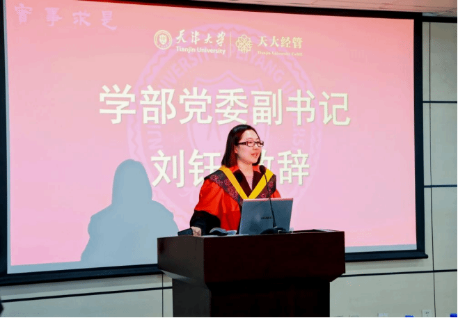 最后,刘钰寄语全体毕业生要牢记“兴学强国”使命,不忘初心勇担社会责任;在金融浪潮中保持清醒、坚定信念,脚踏实地行稳致远。同时,她表示,天大经管永远是大家的温暖港湾,盼学子常回家看看。