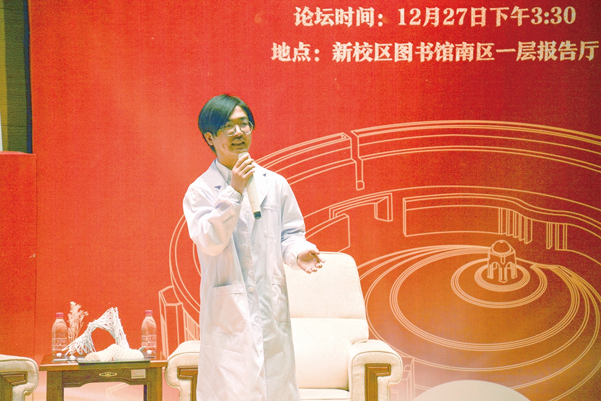 我在大学期间加入了“新竹书画社”。2012年,天津大学第一次举办“海棠季”活动,“新竹书画社”在“海棠季”期间开展了现场笔会的活动。2014年,学校举办了“科学与艺术——中国工程院院士书画展”,我有幸能受邀和院士与书法家共同完成书法作品。2018年至今,我还参加了图书馆的知学沙龙活动,担任第二课堂的主讲人。在此过程中,我看到同学们对书法活动非常有热情,大家的参与度很高。