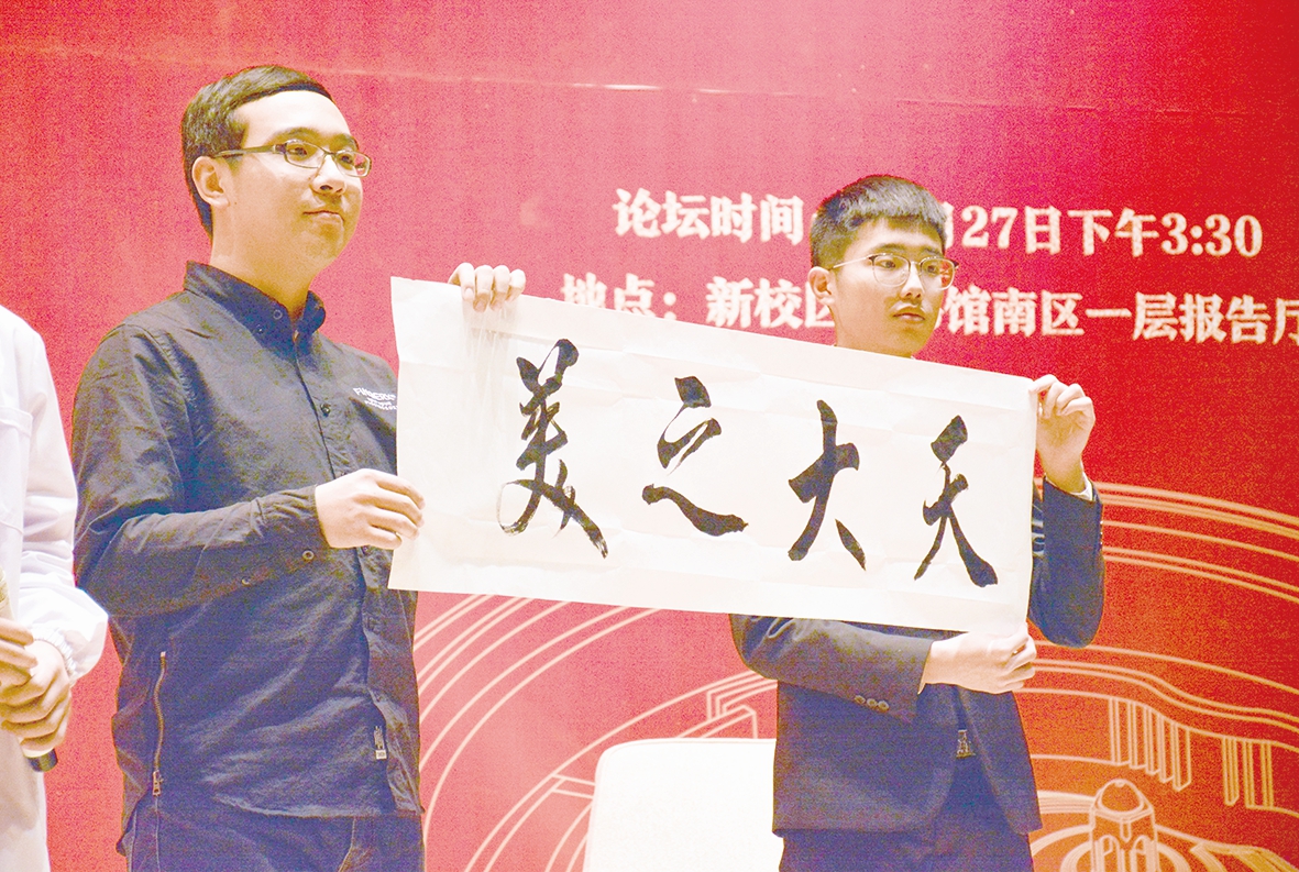 杨光现场书写“天大之美”