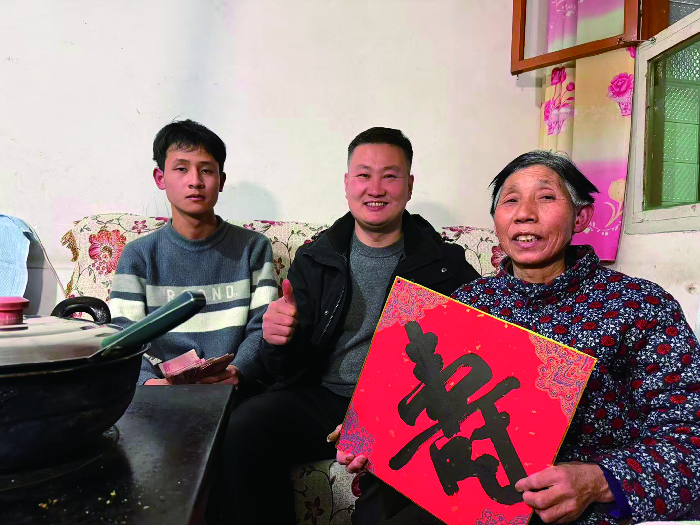 再忙碌,村里的困难群众也始终被他记在心头。“三类户、五保户、贫困学生,过年期间要逐户走访到位,困难学生的资助金得送过去,抽空也得多陪独居老人说说话。”吃过午饭,赵国光收拾好早已备齐的年货,匆匆赶往村民小马家。小马今年上高二,和72岁的奶奶相依为命。他们是村里的特困供养户,赵国光经常去看望他们。除了慰问金和生活用品,这次他还特意亲笔写了一个“寿”字送给小马的奶奶。“奶奶过年好呀,祝您健康长寿!”“好!都好!”赵国光一进门,奶奶就拉着他的手攀起家常。“小马新一年有啥愿望不?”赵国光笑着问。“我的愿望就是像村里的哥哥姐姐们一样考上大学,以后给奶奶更好的生活。”小马略带腼腆地说。