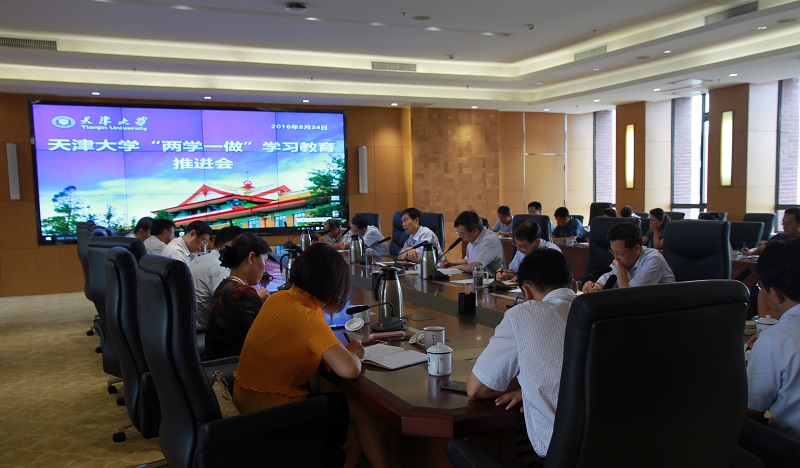 本站讯(通讯员 高立章)8月24日,天津大学召开2016年下半年院级单位“两学一做”工作推进会。会议主题为深入学习贯彻习近平总书记系列重要讲话精神,认真落实中央及天津市委“两学一做”有关要求,推动天津大学党员“两学一做”学习教育更加扎实深入有效地开展。校党委书记刘建平、校党委常务副书记、副校长舒歌群,以及校党委副书记、纪委书记孙广平,校党委副书记、宣传部部长雷鸣出席会议。学校各院级党组织书记及党委职能部门负责人参加会议。