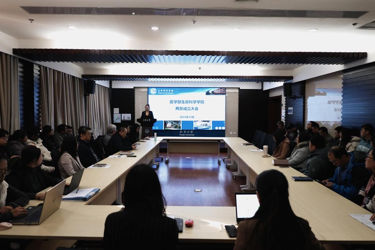 本站讯 2025年12月8日,天津大学医学部生命科学学院召开生物科学系、工程生物学系成立大会,宣布两系领导班子聘任决定、两系组织架构及发展规划。学院领导班子全体成员、全体教师及学生代表参加会议。会议由学院副院长王娟主持。两系的成立标志着学院学科布局优化与内部治理体系完善迈入新阶段。