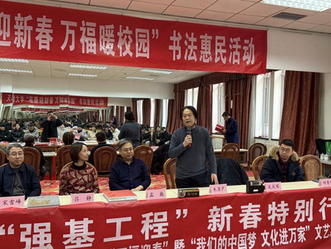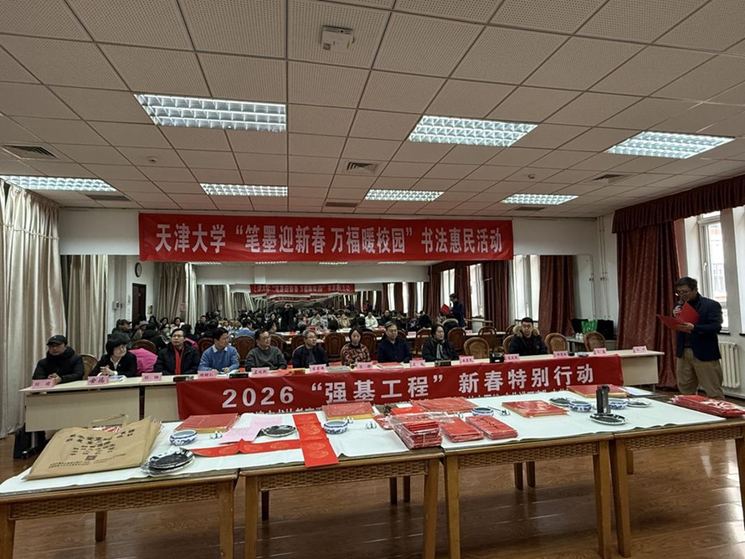 为迎接2026丙午马年新春,1月30日,天津大学工会联合人文艺术学院工会、天津市书协教育委员会,在卫津路校区教职工文化活动中心举办“笔墨迎新春 万福暖校园”书法惠民活动,为教职工送上新春祝福。