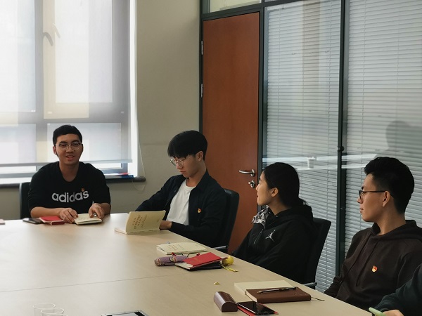 本站讯(通讯员 刘思江 张建鹏)10月23日下午,机械工程学院2019级硕士生第四党支部在北洋园校区37楼315会议室开展“不忘初心、牢记使命”主题教育第二次集体学习会。会议由支部书记刘思江主持,支部15名党员参会。
