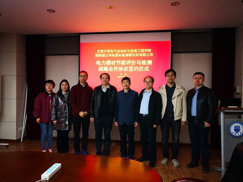 本站讯(通讯员 赵超)3月21日,国网浙江华电器材检测研究所有限公司钟晖董事长一行来我校开展学术交流与合作洽谈,并与自动化学院签署战略合作协议。自动化学院院长王成山教授、高电压与绝缘技术学科负责人杜伯学教授及20余名师生参加了交流活动,双方就电力器材节能评价与检测技术进行了深入的交流与讨论,并愉快地签订了长期战略合作协议。