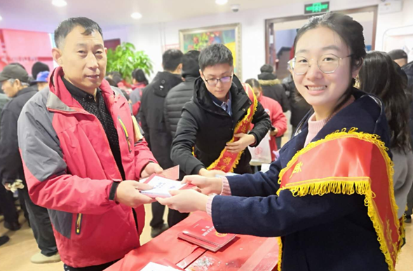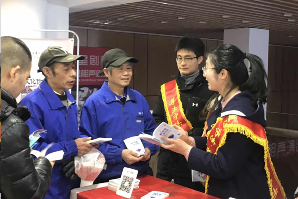 本站讯(通讯员 温锌勇)12月13日上午,由校工会、法学院师生一行6人组成的“尊法守法•携手筑梦”服务农民工法治宣传服务队来到和平区群星剧院,开展服务农民工法治宣传活动。市总工会副主席葛英秋慰问了参加法治宣传服务的师生。