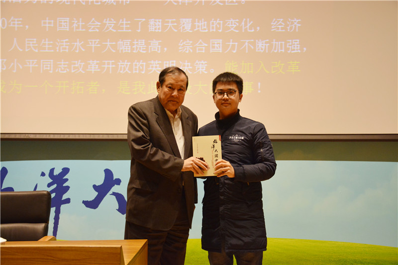 讲座中,他从中国特色社会主义新时代的产生、改革开放历史背景、改革开放历史成就、自己所经历的改革开放40周年等,讲述了他与改革开放40年的故事。