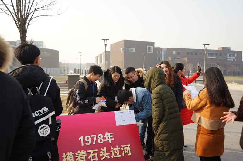 本站讯(通讯员 刘昕 摄影 葛星辰)为纪念改革开放40周年,12月16日,天津大学党委学工部主办,建工、化工、文学、教育和马克思5个学院的研究生会联合举办的“永远在路上”大型定向越野活动在北洋园校区举行。近百名研究生参加活动,他们以马克思主义学院为起点,分别三问桥、建工学院、大通学生中心广场、化工学院和宣怀广场开展知识问答、团建游戏等活动。