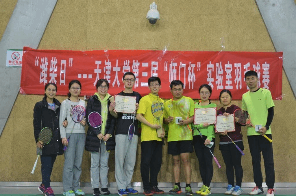 12月9日,四支队伍进行了半决赛、冠亚军争夺赛,最终建筑学院的“DDC队”、管理与经济学部的“欢乐派队”分别获冠军和亚军。随后,工作人员为冠军队伍和亚军队伍颁发证书、奖杯以及奖品;同时,杨佳佳老师、任达老师和曲翠萃老师被授予天津大学第三届“师门杯”实验室羽毛球赛“活力导师”称号。