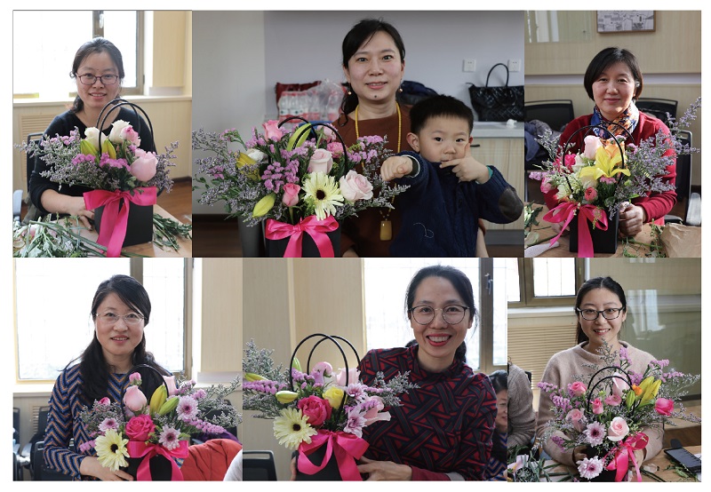 3月9日,卫津路区14楼202满室芬芳。数学学院女教工们参加了“数学之美·绽放”花艺活动活动,学院邀请花艺老师教大家做一组鲜花小品。