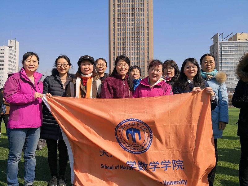 3月9日,北洋园校区体育场。数学学院女教师们携本单位院旗,组织全体参赛队员以方阵的形式参加了集体健步走活动。