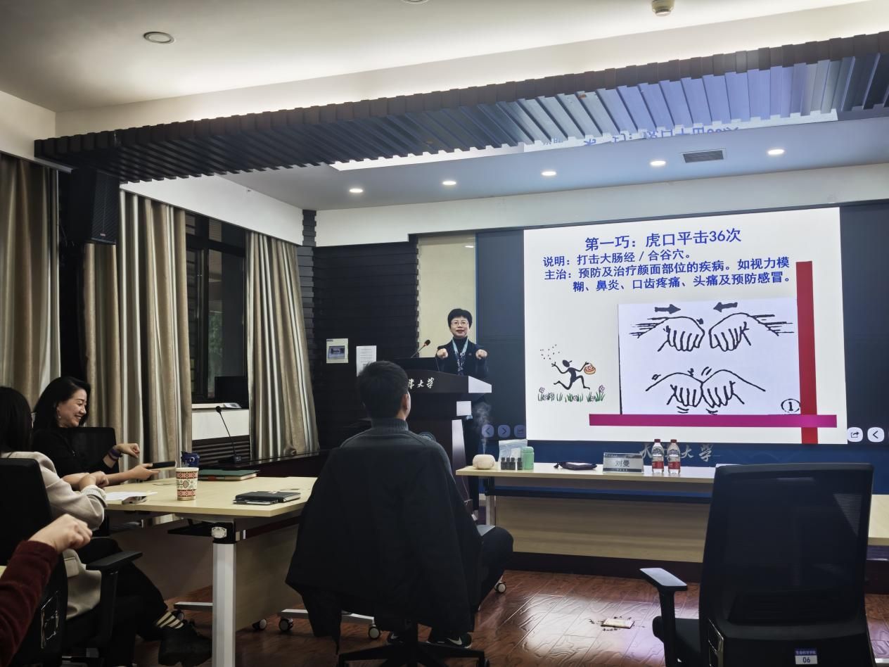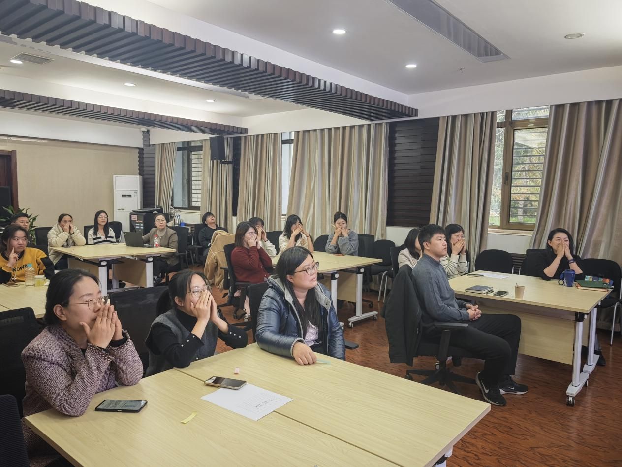 在刘曼老师的带领下,师生还共同学习了一套简单易行的“十巧手操”,大家通过活动双手,击打特定穴位,畅通经络,快速缓解身体疲劳。大家纷纷表示,这几个动作简单易记,非常适合在科研间隙操作,是日常自我保健、理气提神的妙招。