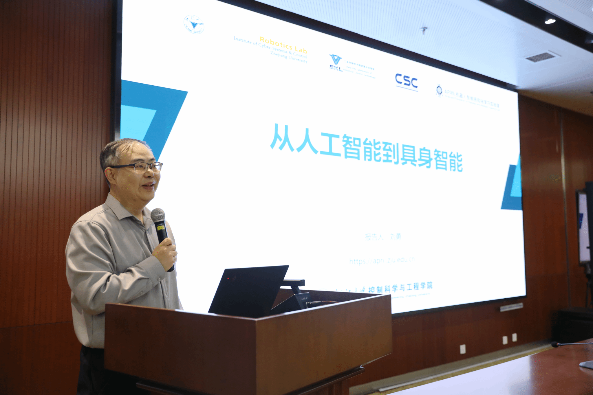 浙江大学控制科学与工程学院刘勇教授以“从人工智能到具身智能”为题,回溯技术演进历程,阐释具身智能的关键要素与实现路径,分享团队成果在多领域的应用实践。