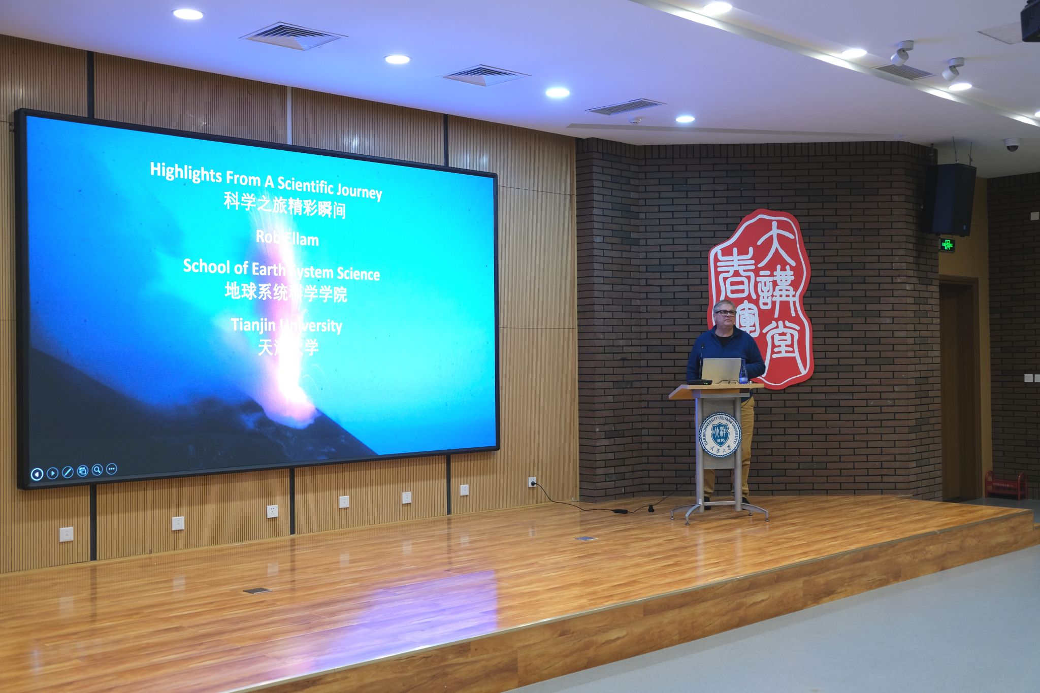 本站讯 2025年12月10日,外国语学院与天津大学地球系统科学学院联合举办“春晖大讲堂”,邀请邀请英国爱丁堡皇家科学院院士、地科院讲席教授Robert Mark Ellam带来题为“Journey to the Centre of the Earth”(地心之旅)的主题讲座,引领师生穿越地表,探秘地球深部的组成、结构与演化奥秘。此次活动既契合天津大学全球南方研究院跨学科学术交流的平台定位,也为相关领域的合作研究与可持续发展注入前沿智慧,彰显了“全球视野、南方智汇、天大担当”的发展愿景。