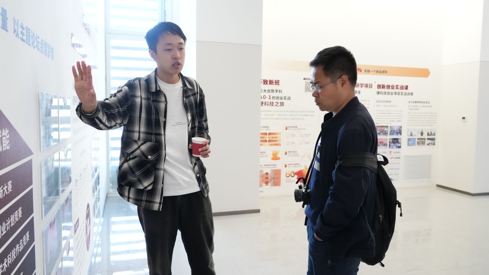 作为本次开放日学院活动的亮点之一,宣怀学院文化墙在北洋园校区落成后,首次面向公众开放。这面承载着学院发展历程与创新创业精神的墙壁,成为连接参观者与“宣怀”理念的桥梁。活动期间,四位由学院师生担任的讲解员轮流值守,以饱满的热情和专业的态度,为参观者进行讲解。