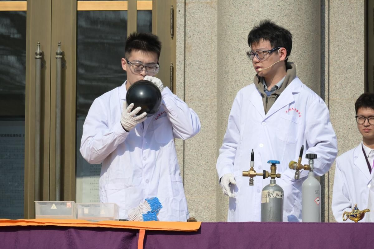 四月南开,海棠如云。4月4日,天津大学化工学院全国科普教育基地携手学院学生科普协会,应邀亮相2026年南开中学海棠节,以一场酷炫互动的科学大秀,点燃全场热情!数千名师生及家长参与其中,现场惊呼不断,大家沉浸式感受科学的独特魅力。