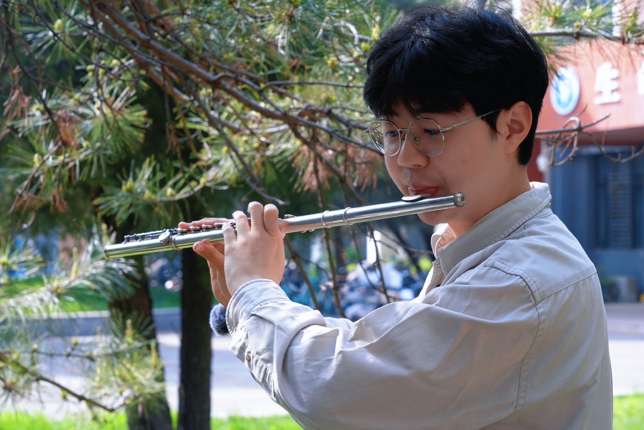 音乐是书房无形的精灵,它与冯骥才的写作相伴相随,既是创作时的背景,也是灵感与情感的催化剂。为了让同学们更深入地感受音乐如何滋养文学创作,本次草坪读书会特别为同学组织了一场小而美的音乐演出。北洋爱乐协会的马英瑞同学带来的长笛独奏婉转悠扬,仿佛将整个春天都吹进了草坪,与书中的情感遥相呼应;图书馆邓泽宇老师的钢琴曲缓缓响起,优雅而宁静的旋律为读书会画上了一抹浪漫的注脚。书香与乐韵交织,文字与旋律共鸣,在场的每一个人都沉浸在这份难得的春日静谧之中。