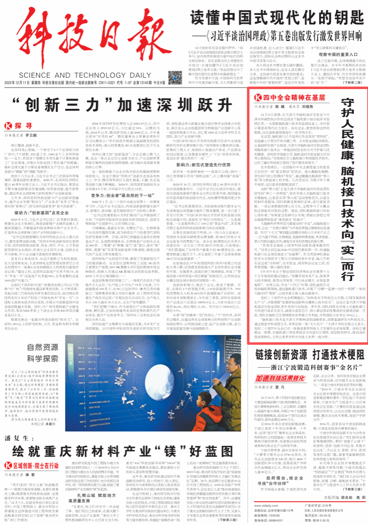 《中共中央关于制定国民经济和社会发展第十五个五年规划的建议》提出,“前瞻布局未来产业,探索多元技术路线、典型应用场景、可行商业模式、市场监管规则”。刘秀云说,早在“十四五”时期,团队就将目光投向脑疾病领域,通过脑机接口技术,实现了“诊断—监测—治疗—预测”一体的大脑实时“观景”,让技术真正嵌入救治链条中。