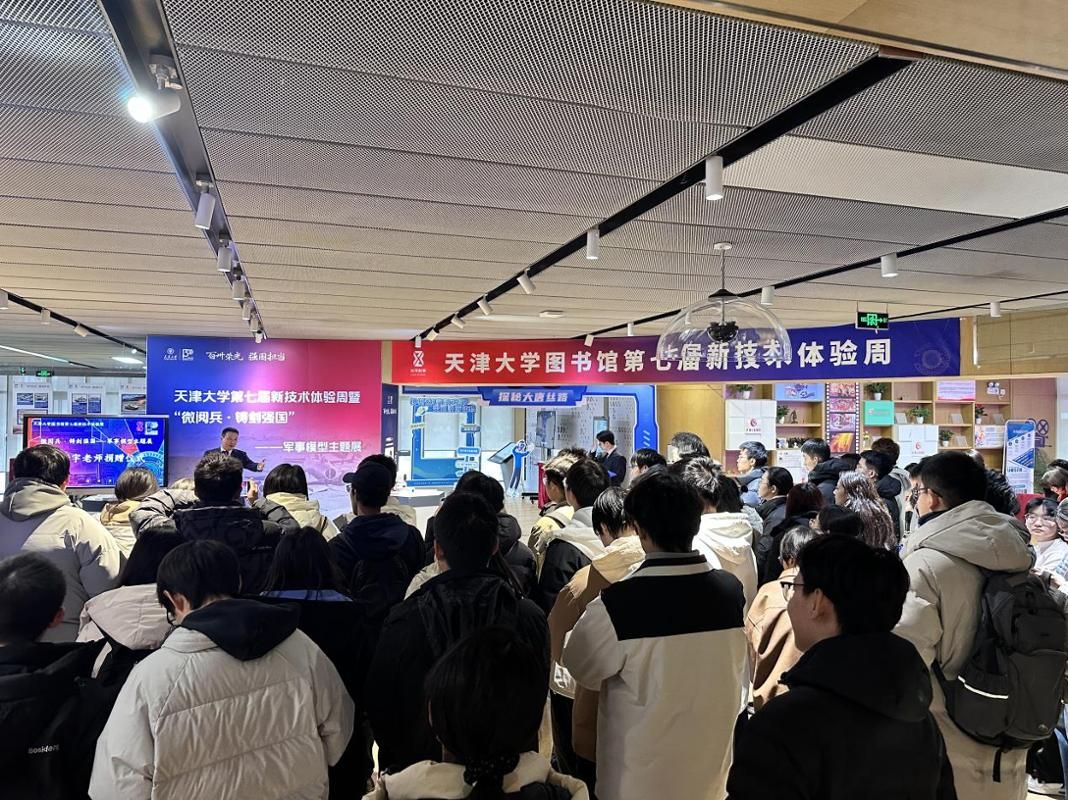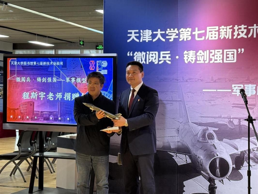 2025年12月12日下午,天津大学图书馆第七届新技术体验周曁“微阅兵·铸剑强国”军事模型主题展在郑东图书馆新技术体验区开幕。本次活动是在纪念中国人民抗日战争暨世界反法西斯战争胜利80周年背景下,进一步贯彻落实习近平总书记关于加强全民国防教育的重要论述,弘扬爱国主义精神,激励天大学子秉承“兴学强国”使命,牢记习近平总书记给全体师生回信的殷殷嘱托,聚焦国家重大战略需求,在科技报国的道路上笃行不怠。