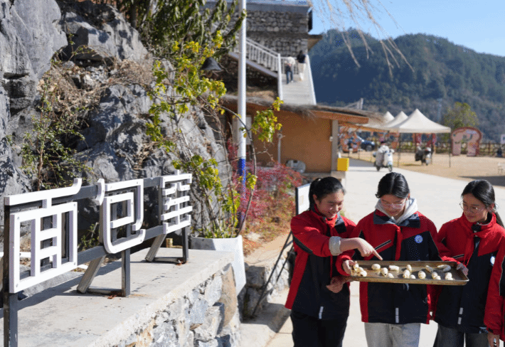 2026年1月14日,小学生在浙江省常山县辉埠镇路里坑村研学体验面包制作。