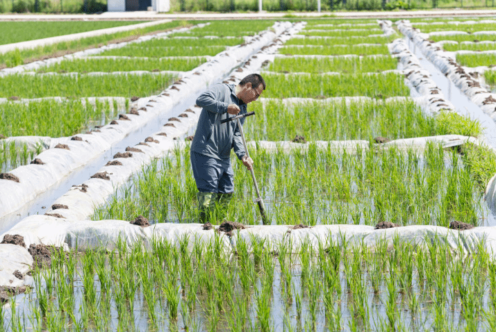 2025年6月18日,在位于黑龙江省双鸭山市宝清县的中国水稻研究所北方水稻研究中心的试验田内,科研人员取耕层土样。
