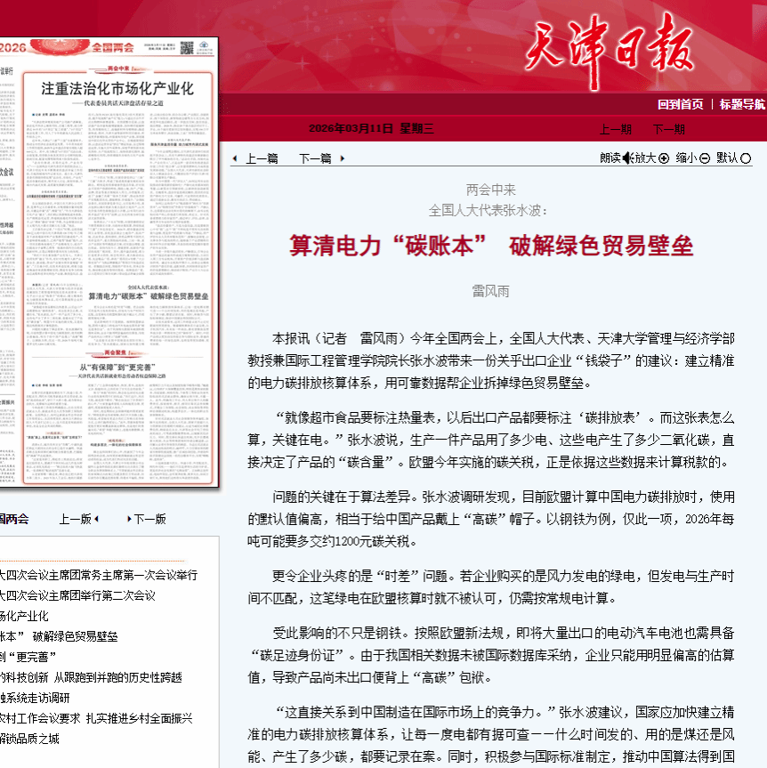 两会期间,张水波教授立足专业优势与履职使命,积极为天津高质量发展、天津大学科技创新发声献策,相关观点先后被央视《新闻联播》、新华社、《经济参考报》《光明日报》、天津日报、津云等中央及地方主流媒体广泛报道,增强了天津声音、展现了天大担当。