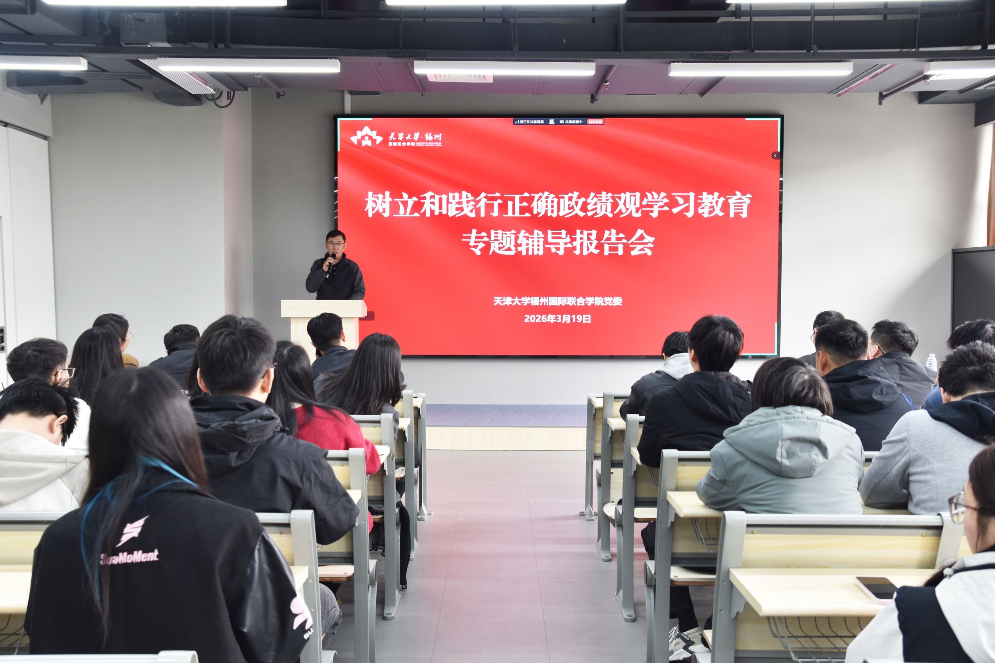 为深入学习习近平总书记关于树立和践行正确政绩观的重要论述,推动树立和践行正确政绩观学习教育走深走实,3月19日下午,福州学院党委举办学习教育读书班,学院党委理论学习中心组成员、党委委员及全体师生党员参加学习,学校学习教育督导组成员翟慧莲、杨漫路列席会议,会议由党委书记李静松主持。