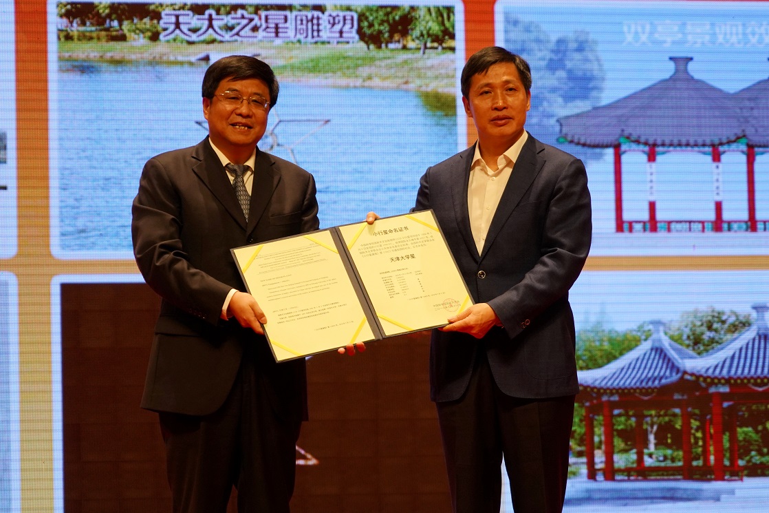 大会还举行了“天津大学星”命名证书颁授仪式和校友捐赠授牌仪式。今年7月11日,国际天文学联合会小行星命名委员会把编号为8917号的小行星永久命名为“天津大学星”,这是1977级、1978级校友送给母校的一份特殊礼物。中国科学院国家天文台副台长薛随建在大会上宣读了“天津大学星”命名公报,钟登华代表学校接受命名证书和行星轨道运行图。