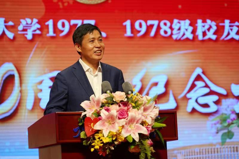 李家俊首先代表全校师生员工热情洋溢地“欢迎校友回家”,并向生活、工作、学习在世界各地的天大校友们,致以最诚挚的问候和最美好的祝福。作为学校78级学生中的一员,他深情回忆了77、78级学子们充满励志与拼搏、执着于自信、梦想与追求的“天大故事”。李家俊还向校友们汇报了学校自改革开放以来,特别是近段时期取得的发展成就。他表示,学校要进一步凝聚师生员工和海内外校友智慧和力量,希望广大校友在为国家、为民族、为社会贡献力量的同时,继续为母校添砖加瓦、献计出力,共同为将母校早日建成中国特色、天大品格的世界一流大学而不懈努力。