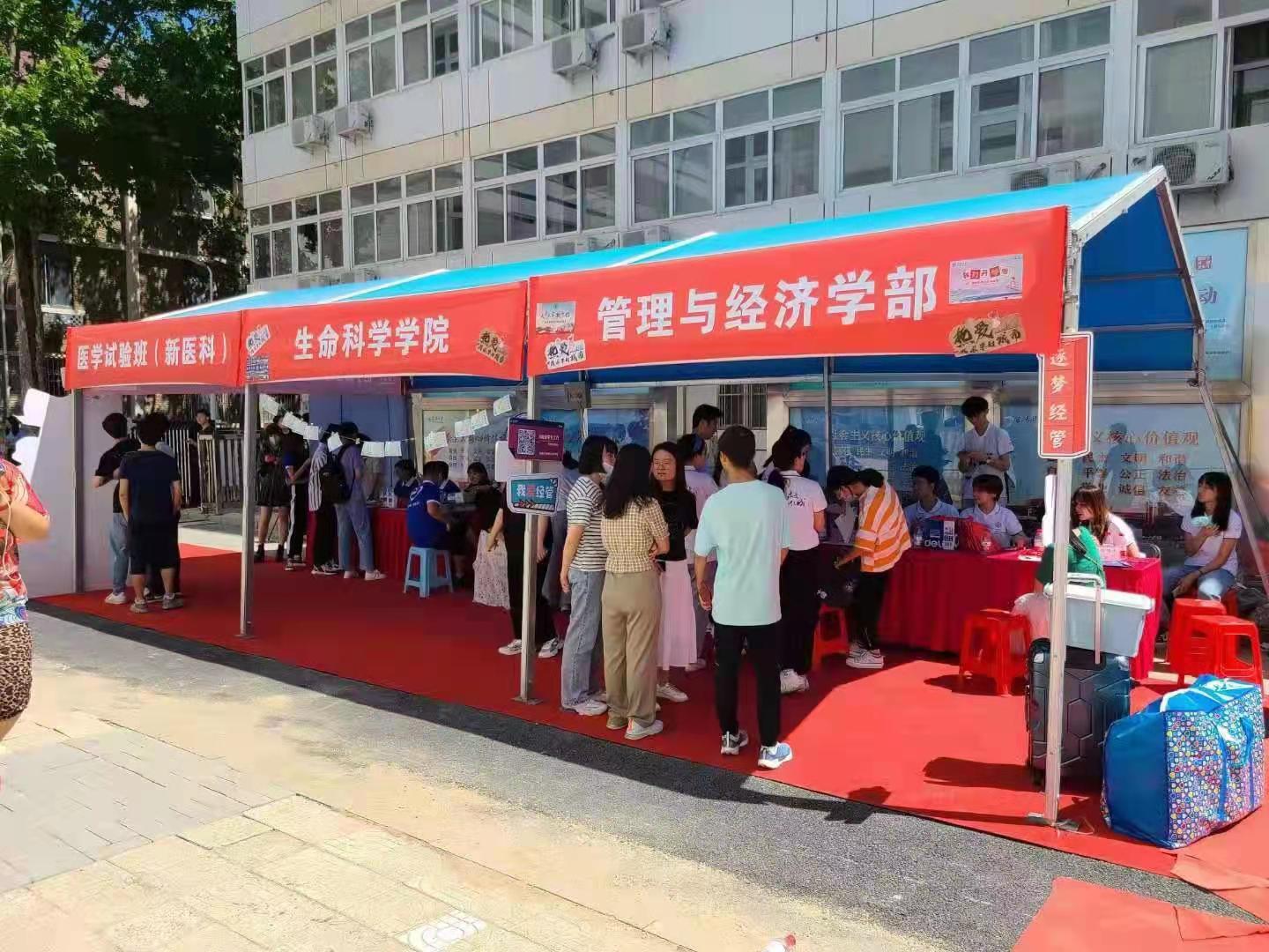 为了让新生更好更快融入学校,天津大学各学部学院根据自己的特色,都精心准备了别具一格的迎新活动和迎新礼物:智算学部迎新帐篷附近,两幅巨大的彩色画板吸引了大批新生驻足,新生们依据学长学姐们的讲解,在两幅画板上留下自己的五彩手印,作为来到智算学部留下的的第一个印记。缤纷的色彩与从树叶间投下来的光斑交相映照,象征对同学们即将开始的大学新生活的美好祝愿。学姐介绍两幅画板主题分别为“庆祝建党一百周年”和“智算学部欢迎大家”,“正值建党百年之际,希望2021级新生可以通过这个简单的入学活动感受家国情怀和学部关怀,帮助学弟学妹们有仪式感地开启美好的大学四年!”微电子学院准备了独具专业特色的伴手礼——“芯片”钥匙扣,意在告诉新生“只要不懈奋斗,未来就在你们手上。”医学试验班的学长学姐们给每一位新生准备了印刻着彩色心电图的笔记本,“既象征着生命的跳动,也祝福新生开启多彩充实、富有活力的大学生活。”求是学部展示了由学生自主设计建造的智能巡线小车、全方位地形车等“黑科技”,鼓励新生与学长学姐们一起向科技最前沿进发。建工学院在迎新活动中融入了天津大学定点帮扶的甘肃宕昌元素,将迎新与乡村振兴结合,通过“转盘比拼”有奖问答,使天大新生了解天大与宕昌的特殊缘分。赠与新生的宕昌小零食不仅好吃,更体现出学校的人文关怀和社会担当。