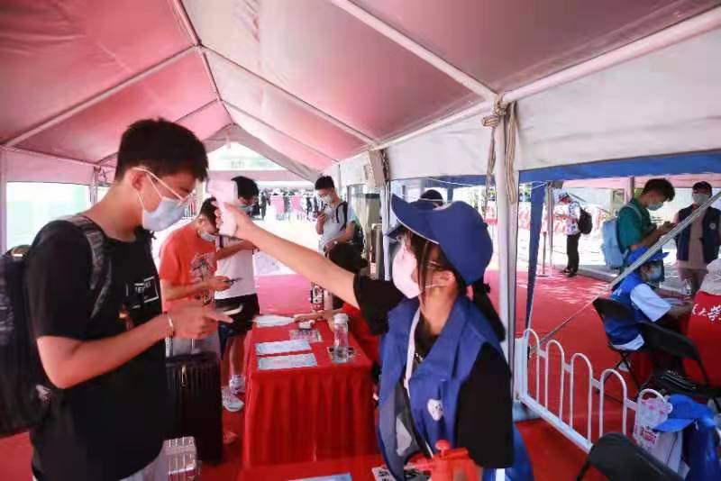天津大学严格遵守疫情防控有关规定,要求新生在报到前14日应每天监测体温,进行自我健康观察;来校途中要严格做好防护,乘坐公共交通工具全程佩戴口罩;自驾到校尽量不在服务区停留。学校还在天津市“三站一场”都设置了由学工教师和校医院医护人员组成的接站队伍。按照学校规定,新生报到前需在“天津大学综合服务平台APP”自助办理账号注册并上传48小时内核酸检测报告。实时更新的“天津大学迎新大数据”让新生报到更加便捷:同学们可以提前登录APP填写接站和疫情防控的基本数据。到达天津后,在机场、火车站和校门口,新生扫描专用的“迎新二维码”,即可实现接站、报到等迎新大数据的实时动态更新。这些数据通过可视化系统实时反馈至迎新点的工作人员,方便工作人员及时了解新生报到情况,调整工作预案,统筹疫情防控工作等。