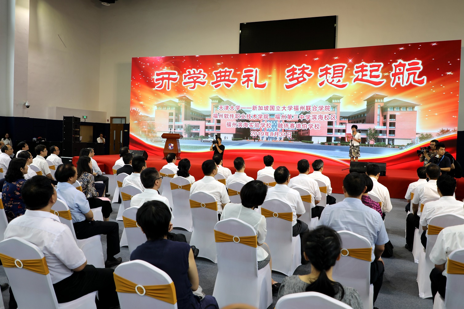 (记者焦德芳 摄影摄像刘延俊、丁宇)8月31日,天津大学-新加坡国立大学福州联合学院举行开学仪式,60名博士新生成为了天津大学福州国际校区第一批“主人”。福建省委副书记、福州市委书记王宁,福州市委副书记、市长尤猛军,福州市常务副市长林飞,福州市委常委、秘书长张忠,福州市人大常委会副主任肖华,福州市副市长李春,福州市政协副主席罗蜀榕,新加坡国立大学常务副校长梅彦昌,天津大学党委书记李家俊,副校长胡文平,党委常委、总会计师古瑶及学校党办校办、基建处、国际处、设计总院、密歇根联合研究院、福州校区筹备办公室负责人和相关学院科研团队骨干出席仪式。仪式由福州市副市长李春主持。