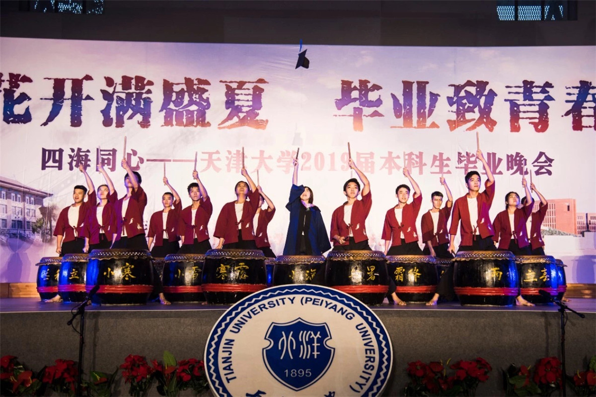 第一篇章“追踪·七星灯火”中,北洋合唱团带来的《天津大学校歌》唤起在座毕业生的天大情。随后,由天津大学艺术教育中心郝音老师带来的歌曲《春天的芭蕾》,以花腔女高音将现场气氛点燃。国际教育学院留学生带来节目《廿四节令鼓》气势震人,响彻云霄,展现了青年学子精神饱满、朝气蓬勃的风采。天津大学原创歌曲《海棠花开》以唯美浪漫的舞台与清澈的歌声相融,共同织就一片海棠记忆。