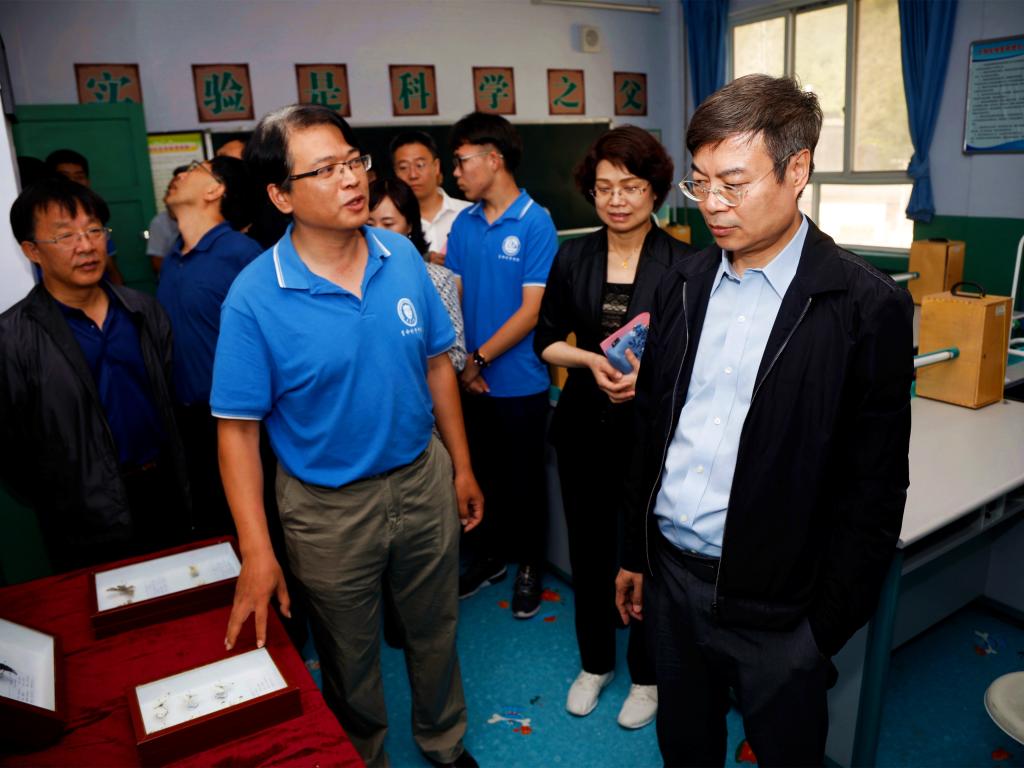 12日上午,金东寒一行来到宕昌县官亭镇九年制学校,看望正在这里开展科普教育宣讲的工会青年教师团。今年暑期,学校工会派出两队优秀教师赴宕昌15所九年一贯制学校开展科普宣讲工作。在宣讲课堂,金东寒与同学们一起观看了机械学院邢元老师展示机器人的功能与应用。金东寒与孩子们分享了自己儿时的科学梦、报国梦,鼓励大家积极培养对科学的浓厚兴趣,涵养家国情怀,努力成长为建设国家、服务社会的栋梁之材。