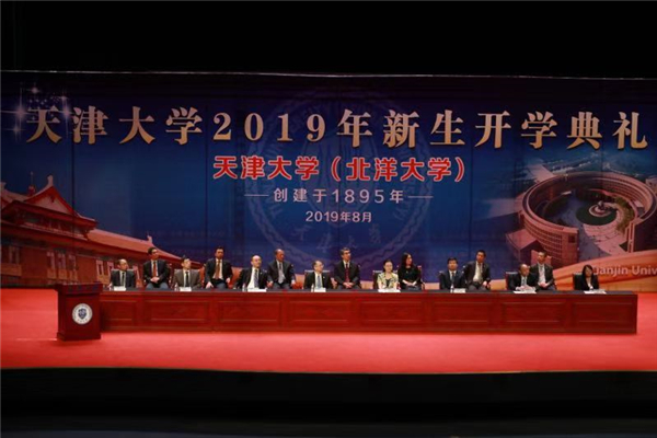 出席典礼的学校领导及专家有:天津大学校长金东寒,党委副书记、纪委书记孙广平,党委常委、副校长元英进,党委副书记、组织部长、统战部长赵美蓉,党委常委、校长助理张力新,校长助理刘宁,校长助理、天津大学佐治亚理工深圳学院筹备办主任肖松山,党委常委、宣传部长贾启君,建筑学院教授曾坚,表层地球系统科学研究院教授徐胜,电气自动化与信息工程学院教授庞彦伟,数学学院教授荣喜民,化工学院教授张香文,机械工程学院教授尧命发、建筑工程学院刘润。参加典礼的还有各学院党政领导、教师代表以及机关部处的负责同志。青岛研究院的新同学也通过网络直播的方式参加了开学典礼。党委常委、副校长王树新主持开学典礼。